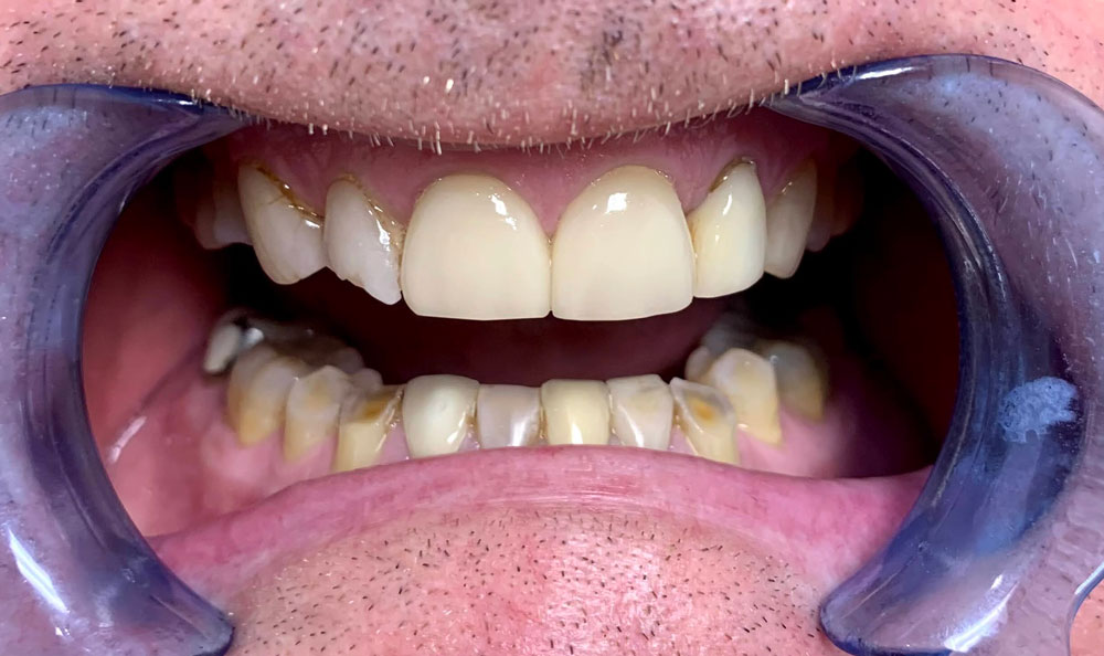 - Darkening or deep decay of the gums